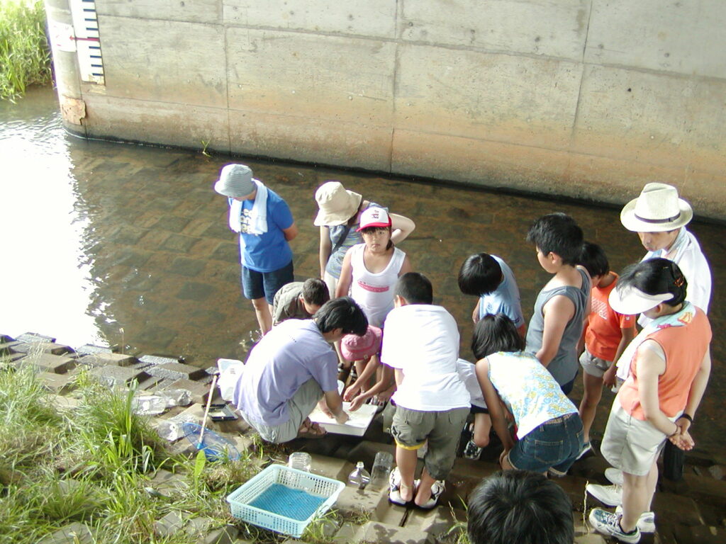 こんな排水路としか思っていなかった川に、たくさんの生きものがいて感激!さっそくタモ網などを買って、うちの子ども達とガサガサしてみましたよ。またまた感激して、小学校の先生たちに「たくさんの生きものがいて素晴らしいから、是非皆で生きものを捕ってみませんか?!」とお話しすると、校長はじめ皆「それは素晴らしいですね」と言うものの、一向に何もしようとしないので、私の緑化技術の師匠で、里山の会を主催していた孫田敏さんに愚痴ってみたら「そんな先生にやってもらおうとしないで、お前がやったらどうだ」と言われました。