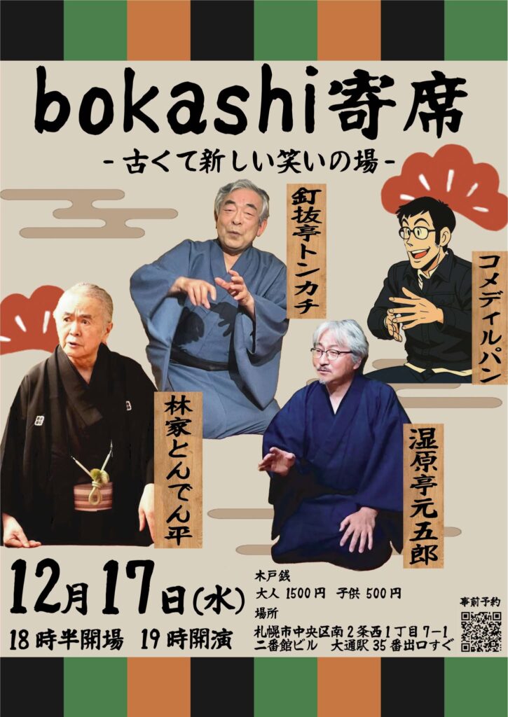 そしてbokashi寄席も、2度目の年末を迎え、さらにさらに感謝を込めて、皆さまを笑わせ、楽しい時間をお送りします。