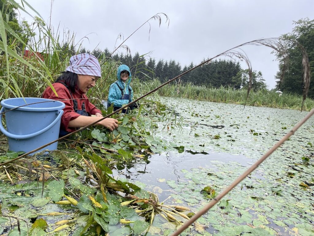 僕らは数年前から、札幌近郊の汚くない(下水が注いでいない)沼でヒシを採って、アイヌ文化を伝えてくれる川上裕子先生(ひろこおばちゃん)にアイヌ料理を教わって食べる会を、NPO法人人まち育てⅠ&Ⅰ主催で行っています。
