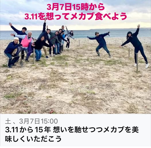 東日本大震災から15年、これまでを振り返り、今を感じ、想いをちょっとシェアして、明日に繋ぎませんか。
