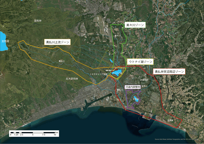 ウトナイ湖を中心に未来のために保全すべき「4つの重点ゾーン」(日本野鳥の会より)